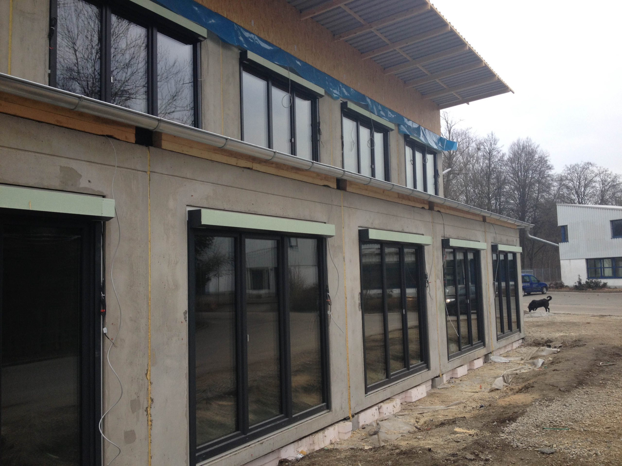 Der Rohbau steht und die Fenster sind gesetzt. Alle Handwerker sind vor Ort. Es geht voran.