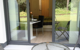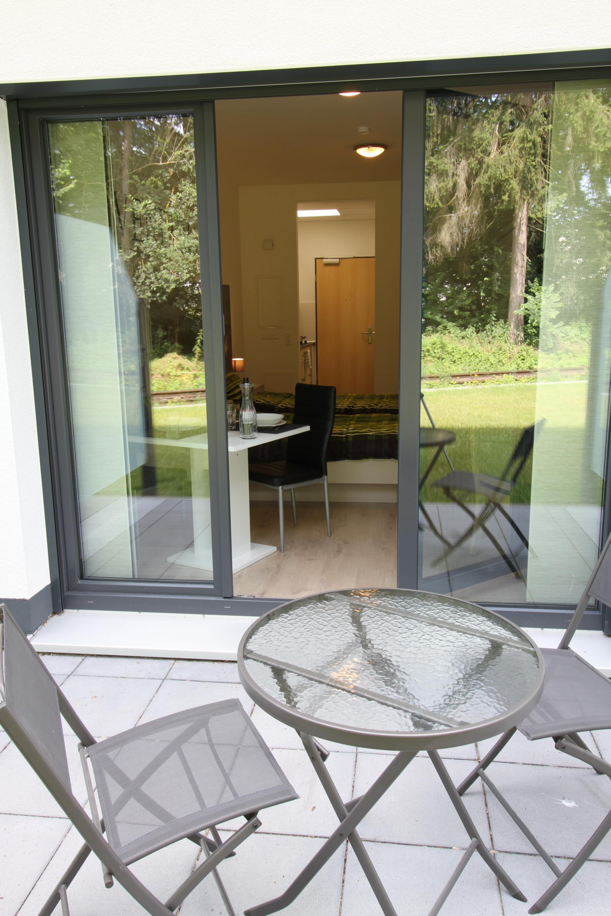 Dort stehen Ihnen, auf Ihrer Terrasse, auch Gartenmöbel und Aschenbecher zur Verfügung.